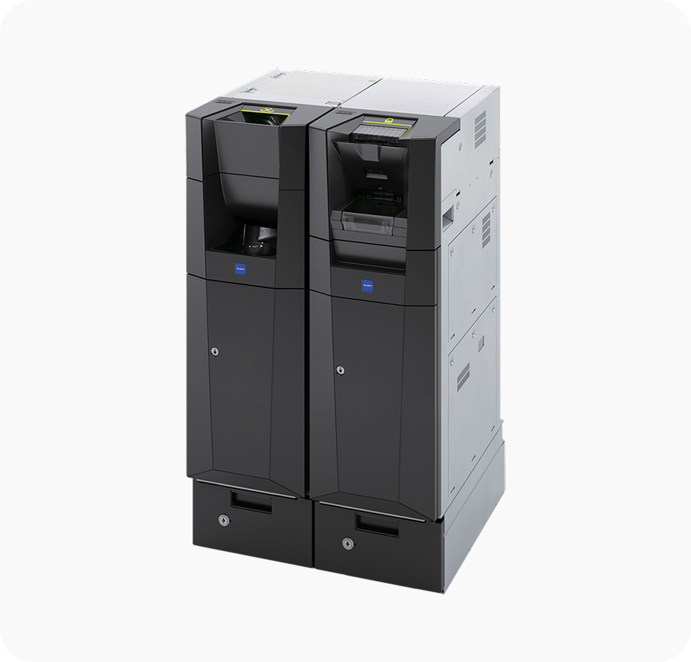 Solution back-office, stockage jusqu'à 2 000 billets, recyclage de 1 200 billets.