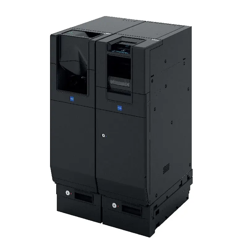 gestion des dépôts et retraits de cash. Vitesse : jusqu'à 3,5 pièces/seconde et 1 billet/seconde. Capacité : jusqu'à 1 200 pièces et 150 billets.